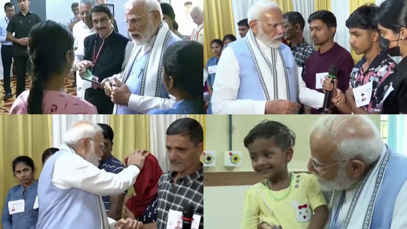 പതിനൊന്ന് പേരെ നഷ്ടപ്പെട്ട മുഹമ്മദ് ഹാനി, വലിയ നഷ്ടങ്ങൾ സംഭവിച്ച് ദുരന്തത്തെ അതിജീവിച്ച പവിത്ര, ലാവണ്യ, ഹർഷാദ്, സുധാകരൻ, ഷറഫുദ്ദീൻ, ശ്രുതി.. തുടങ്ങിയവരെയാണ് കണ്ടത്. സമയ ക്രമം നോക്കാതെ പ്രധാനമന്ത്രി ദുരന്ത ബാധിതരെ ആശ്വസിപ്പിച്ചു. പ്രധാനമന്ത്രിയെ കണ്ട പലരും വിങ്ങിപ്പൊട്ടി. എല്ലാവരുടെയും ദുഖത്തില് പങ്കുചേര്ന്ന മോദി അവരെ ആശ്വസിപ്പിച്ചു.
