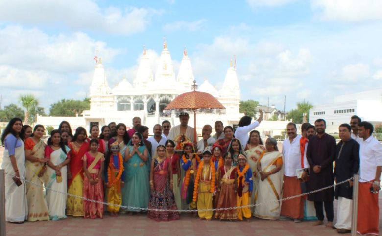 ഹ്യൂസ്റ്റൺ : 2024 ഓഗസ്റ്റ് 24 ശനിയാഴ്ച ശ്രീ ഗുരുവായൂരപ്പൻ ക്ഷേത്രത്തിൽ വച്ച് നടത്തപ്പെടുന്ന അഷ്ടമി രോഹിണി ആഘോഷങ്ങളുടെ മുന്നോടിയായി ഓഗസ്റ്റ് 18ന് കേരള ഹിന്ദു സൊസൈറ്റിയുടെയും KHS സ്കൂളിന്റെയും ആഭിമുഖ്യത്തിൽ ഹ്യൂസ്റ്റണിലെ വിവിധ ക്ഷേത്രങ്ങളിലൂടെ വിളംബരയാത്ര സംഘടിപ്പിച്ചു. ശ്രീ ഗുരുവായൂരപ്പൻ ക്ഷേത്രത്തിൽ നിന്നും ആരംഭിച്ച് BAPS, VPSS Haveli മുതലായ ക്ഷേത്രങ്ങൾ സന്ദർശിച്ച തീർത്ഥാടന സംഘം ഉച്ചയോടെ ശ്രീ മീനാക്ഷി ദേവസ്ഥാനത്തെത്തി. ഗംഭീരമായ സ്വീകരണമാണ് വിളംബര യാത്രക്ക് ഓരോ ക്ഷേത്രങ്ങളിലും ലഭിച്ചത്. കൃഷ്ണ വേഷം ധരിച്ച ബാലിക ബാലൻമാരും രാധമാരും വിളംബര യാത്രയുടെ ഭാഗമായി.