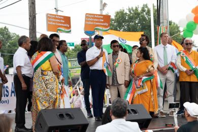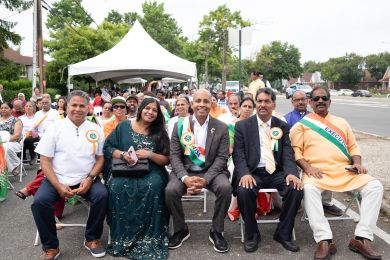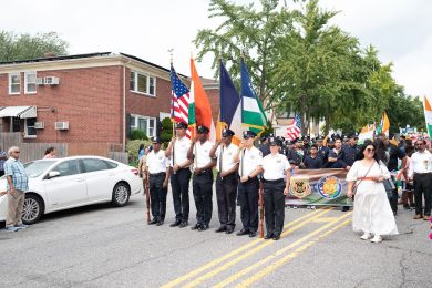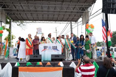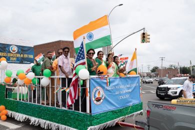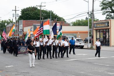 വിവിധ സംഘടനകളുടെ ബാനറുകൾ വഹിച്ച പ്രവർത്തകരും ഇന്ത്യൻ പതാകയാൽ അതിമനോഹരമായി അലങ്കരിതമായ ഫ്ളോട്ടുകളും ഹിൽസൈഡ് വീഥിയിലൂടെ മന്ദം മന്ദം നീങ്ങിയപ്പോൾ പ്രാദേശികരായ ജനങ്ങളും ധാരാളം ഇന്ത്യൻ ജനതയും റോഡിനു ഇരുവശവുമായി അണിനിരന്ന് അഭിവാദ്യം അർപ്പിച്ചത് നയന മനോഹരമായി. പരേഡിൻറെ മുൻ നിരയിൽ ന്യൂയോർക്ക് പോലീസ് ഡിപ്പാർട്ട്മെന്റിൻറെ രണ്ട് പോലീസ് കുതിരകളും പോലീസുകാരും, പോലീസ് മോട്ടോർബൈക്ക് ട്രൂപ്പും, ന്യൂയോർക്ക് പോലീസിൽ പ്രവർത്തിക്കുന്ന യൂണിഫോം അണിഞ്ഞ ഇന്ത്യൻ വംശജരുടെ “ദേശി പോലീസ് അസ്സോസ്സിയേഷൻ” അംഗങ്ങളും ഇന്ത്യൻ പതാകയും അമേരിക്കൻ പതാകയുമായി അണിനിരന്നപ്പോൾ പരേഡ് പ്രൗഡ്ഢഗംഭീരമായി.