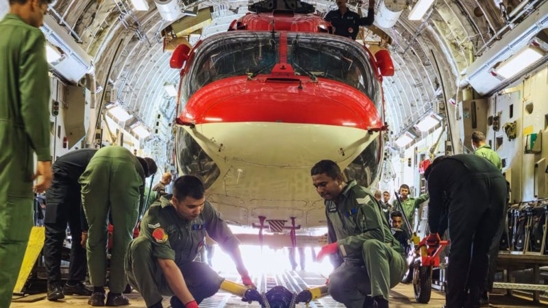 2024 സെപ്റ്റംബർ 3 മുതൽ 5 വരെ അൽ-അലമൈൻ ഇൻ്റർനാഷണൽ എയർപോർട്ടിൽ നടക്കുന്ന എയർഷോയ്ക്കായി അഞ്ച് സാരംഗ് ഹെലികോപ്റ്ററുകളുള്ള (ALH Mk1) IAF സംഘത്തെ C-17s എയർലിഫ്റ്റ് ചെയ്യുന്നു. തദ്ദേശീയമായ ‘ധ്രുവ്’ ALH പറക്കുന്ന IAF സാരംഗ് ടീം പ്രതിനിധീകരിക്കുന്നു, പ്രസ്താവനയില് കൂട്ടിച്ചേര്ത്തു.