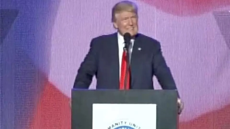 New Jersey (US): Republican presidential candidate for the US Donald Trump at event hosted by the Republican Hindu Coalition. pic.twitter.com/eaEyUZGW0V