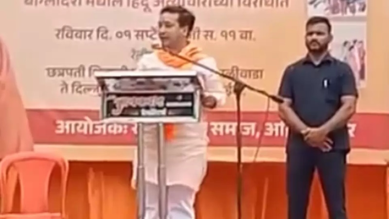 In a rally organized in Ahmednagar, Maharashtra in support of Ramgiri Maharaj, who had said objectionable words against Prophet Mohammad PBUH, BJP leader Nitish Rane is openly threatening to enter the mosque & kill Muslims.@NagarPolice should take immediate action on this. pic.twitter.com/scsulPHP97