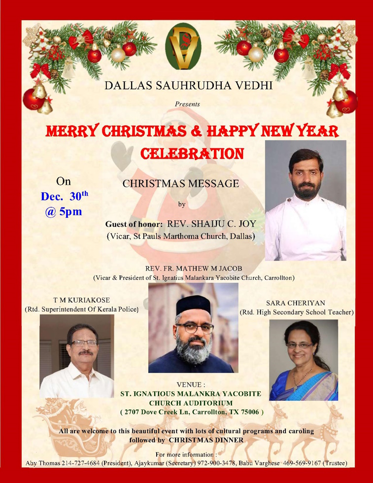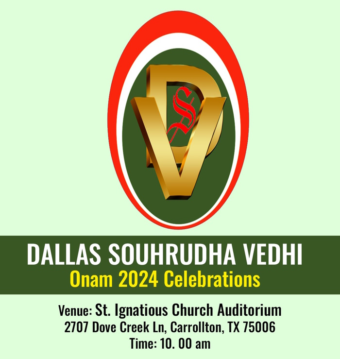 ഡാളസ് : ഡാളസിലെ സാമൂഹിക സാംസ്കാരിക സംഘടനയായ സൗഹൃദവേദിയുടെ പതിനൊന്നാമത് ഓണാഘോഷം വിവിധ പരിപാടികളോട് സെപ്റ്റംബർ 7 ശനിയാഴ്ച രാവിലെ 10 മണിക്ക് കരോൾട്ടൻ സെന്റ്. ഇഗ് നേഷ്യസ് ഓഡിറ്റോറിയത്തിൽ (2707 Dove Creek Ln, Carrollton, Tx 75006) വെച്ച് നടത്തപ്പെടും.