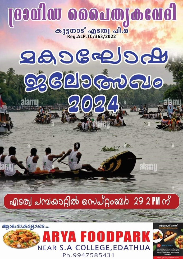 എടത്വാ : ദ്രാവിഡ പൈതൃക വേദിയുടെ ആഭിമുഖ്യത്തിൽ സെപ്റ്റംബർ 29ന് 2 മണിക്ക് എടത്വായിൽ നടത്തപ്പെടുന്ന മൂന്നാമത് മകം ജലോത്സവത്തിന്റെ സ്വാഗത സംഘം ഓഫീസ് എടത്വാ സെന്റ് അലോഷ്യസ് കോളേജിന് സമീപം തുണ്ടിപറമ്പിൽ ബിൽഡിംഗ്സില് ലയൺസ് ക്ലബ് ഓഫ് എടത്വാ ടൗൺ പ്രസിഡന്റ് ഡോ ജോൺസൺ വി ഇടിക്കുള ഉദ്ഘാടനം ചെയ്തു.