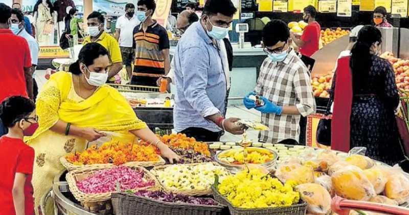 പരമ്പരാഗത ഓണസദ്യയ്ക്കുള്ള നിർബന്ധമായ പലഹാരങ്ങളായ പായസം, ബോളിസ്, ഏത്തപ്പഴ ചിപ്സ് എന്നിവ പലഹാരക്കാർ വിൽക്കുന്നതിന് മുമ്പുള്ള നീണ്ട ക്യൂവിൽ അവധിക്കാല ആഹ്ലാദം പ്രകടമായിരുന്നു.
