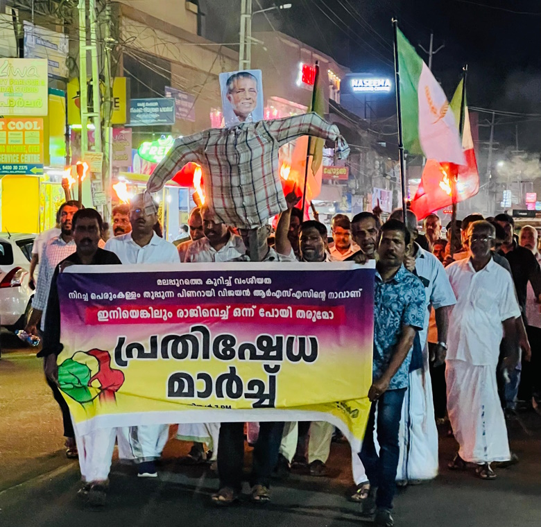 മലപ്പുറത്തെ കുറിച്ച് വംശീയത നിറച്ച പെരുംകള്ളം തുപ്പുന്ന പിണറായി വിജയൻ ആർഎസ്എസിന്റെ നാവാണ്, ഇനിയെങ്കിലും രാജിവെച്ച് ഒന്ന് പോയി തരുമോ എന്ന് മുദ്രാവാക്യം ഉയർത്തിയാണ് വെൽഫെയർ പാർട്ടി മലപ്പുറത്ത് പ്രതിഷേധ പ്രകടനം നടത്തി മുഖ്യമന്ത്രിയുടെ കോലം കത്തിച്ചത്.