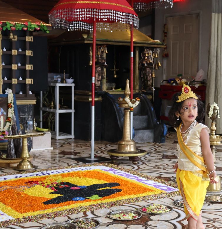 ഈ വർഷത്തെ ഓണാഘോഷ ഉത്സവം ബ്രഹ്മശ്രീ രാധാകൃഷ്ണൻ നമ്പൂതിരിയുടെ കാർമ്മികത്വത്തിൽ രാവിലെ കൃത്യം ഒൻപത് മണിക്ക് വിശേഷാൽ പൂജകളോടെ ആരംഭിച്ചു. തുടർന്ന് നടന്ന ആർപ്പുവിളികളും, നാരായണമന്ത്ര ധ്വനികളാൽ ധന്യമായ ശുഭമുഹൂർത്തത്തിൽ ചിക്കാഗോ കലാക്ഷേത്ര കലാകാരൻമാരുടെ നേതൃത്വത്തിൽ നടന്ന വാദ്യഘോഷവും തലപൊലികളുടെയും അകമ്പടിയോടെ, തൃക്കാക്കരയപ്പനെ ഗീതാമണ്ഡലം തറവാട്ടിലേക്ക് ആനയിച്ചു കൊണ്ടുവന്നു. അതിനുശേഷം തറവാട്ട് ക്ഷേത്രാങ്കണത്തിൽ വാമനമൂർത്തിക്ക് വിശേഷാൽ പൂജയും, വാമനാവതാര പാരായണവും അഷ്ടോത്തര അർച്ചനയും, നൈവേദ്യ സമർപ്പണവും പുഷ്പാഭിഷേകവും നടത്തി.