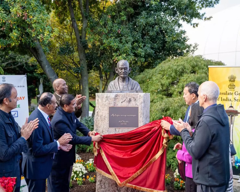 സിയാറ്റിൽ:ഇന്ത്യൻ സ്വാതന്ത്ര്യ സമര സേനാനിയുടെ ജന്മവാർഷികത്തോടനുബന്ധിച്ച് ഒക്ടോബർ 2 ന് സിയാറ്റിൽ സെൻ്ററിൽ മഹാത്മാഗാന്ധിയുടെ പ്രതിമ അനാച്ഛാദനം ചെയ്തു. ചിഹുലി ഗാർഡൻ ആൻ്റ് ഗ്ലാസ് മ്യൂസിയത്തിനോട് ചേർന്നുള്ള സ്പേസ് സൂചിക്ക് താഴെ സ്ഥിതി ചെയ്യുന്ന ഇത് സിയാറ്റിലിൽ ഗാന്ധിക്ക് സമർപ്പിച്ച ആദ്യത്തെ ഇൻസ്റ്റാളേഷനാണ്.