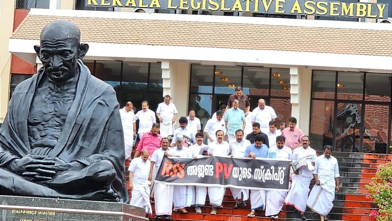 ആർഎസ്എസ്) മലപ്പുറം ജില്ലയിലെ ജനങ്ങളെ സാമ്പത്തിക കുറ്റവാളികളും ദേശവിരുദ്ധരുമായി ദേശീയ മാധ്യമങ്ങൾ വഴി പ്രചരിപ്പിച്ചുവെന്ന പ്രതിപക്ഷത്തിൻ്റെ ആരോപണത്തിന്മേലുള്ള അടിയന്തര പ്രമേയ ചർച്ചയ്ക്ക് വിജയൻ സമ്മതിച്ചതിനെ തുടർന്നാണ് സംഘർഷം പൊട്ടിപ്പുറപ്പെട്ടത്.