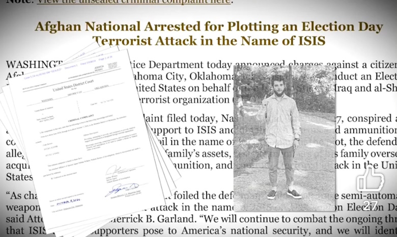 ഒക്കലഹോമ : തിരഞ്ഞെടുപ്പ് ദിനത്തിൽ ഭീകരാക്രമണം നടത്താൻ പദ്ധതിയിട്ടിരുന്ന ഒക്ലഹോമ സിറ്റിയിൽ താമസിക്കുന്ന അഫ്ഗാനിസ്ഥാനിൽ നിന്നുള്ള ഒരാളെ എഫ്ബിഐ അറസ്റ്റ് ചെയ്തു.