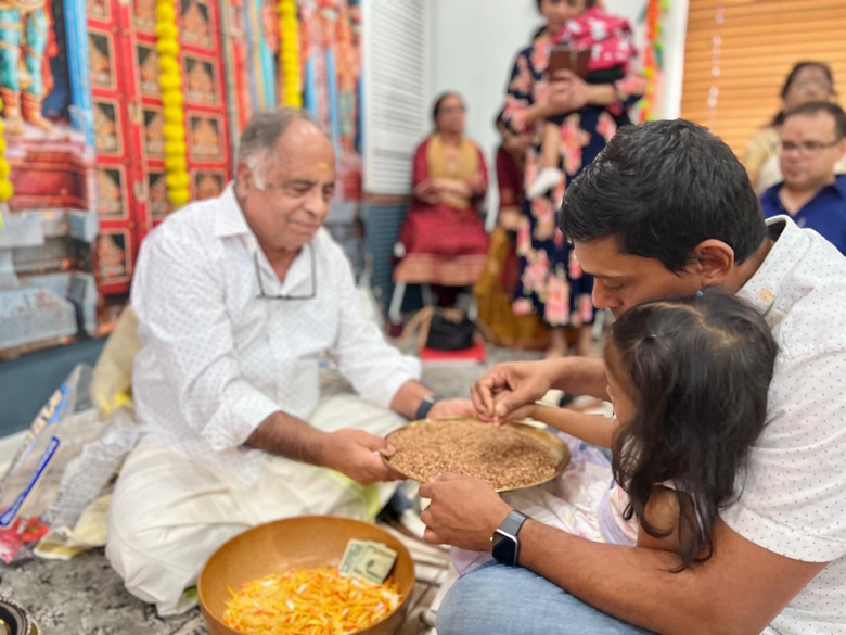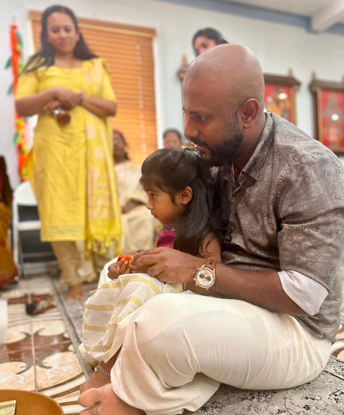 ചിക്കാഗോ ഗീതാമണ്ഡലം തറവാട് ക്ഷേത്രത്തിൽ അജ്ഞാനമാകുന്ന അന്ധകാരത്തെ അകറ്റി, വിദ്യയാകുന്ന വെളിച്ചത്തിന്റെ ലോകത്തേക്ക് ആദ്യാക്ഷരം കുറിച്ച് കുരുന്നുകൾ.