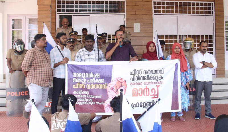 അന്യായമായി നടപ്പിലാക്കിയ ഫീസ് വർദ്ധന പിൻവലിക്കുക, പാഠ പുസ്തകങ്ങളും, സ്റ്റഡി മെറ്റീരിയലുകളും പ്രസിദ്ധീകരിച്ച ശേഷം മാത്രം പരീക്ഷ നടത്തുക. എന്നീ ആവശ്യങ്ങളുന്നയിച്ചായിരുന്നു ഫ്രറ്റേണിറ്റി മാർച്ച്.