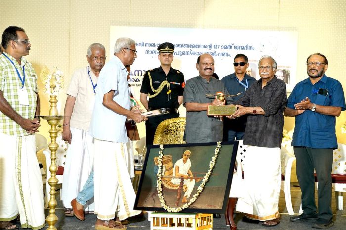 മഹാകവി നാലപ്പാട്ട് നാരായണ മേനോന്റെ 137ാം ജന്മദിനാഘോഷം പുന്നയൂര്ക്കുളത്ത് നടന്ന അനുസ്മരണ വേദിയില് ബംഗാള് ഗവര്ണര് സി.വി. ആനന്ദബോസ് ഉദ്ഘാടനം ചെയ്തു. നാലപ്പാടന് പുരസ്കാരം ഗവര്ണര് സി.വി. ആനന്ദബോസ് ഗാന രചയിതാവ് ശ്രീകുമാരന് തമ്പിക്ക് സമര്പ്പിച്ചു. ശ്രീകുമാരന് തമ്പി ലോകം മുഴുവന് അറിയപ്പെടുന്ന കവിയാണെന്ന് ഗവര്ണര് വിശേഷിപ്പിച്ചു.