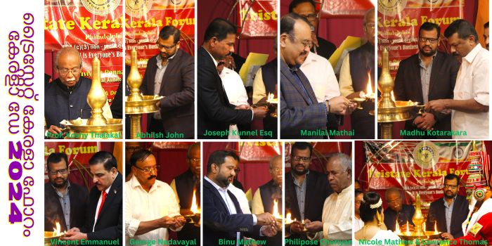ഫ്രൊഫസർ കോശി തലയ്ക്കൽ, മണിലാൽ മത്തായി, അറ്റേണിജോസഫ് കുന്നേൽ, മധു കൊട്ടാരക്കര, അഭിലാഷ് ജോൺ (ചെയർമാൻ), ബിനു മാത്യൂ (സെക്രട്ടറി), ഫീലിപ്പോസ് ചെറിയാൻ (ട്രഷറാർ), വിൻസൻ്റ് ഇമ്മാനുവേൽ (പ്രോഗ്രാം കോഡിനേറ്റർ), ജോർജ് നടവയൽ (കേരളം ഡേ ചെയർമാൻ), നിക്കോൾ മാത്യൂ (മോഹിനിയാട്ടം ഇമേജ്), ലോറൻസ് തോമസ് (കഥകളി ഇമേജ്) എന്നിവർ ചേർന്ന് പതിനൊന്നു സ്വർണ്ണ നാളങ്ങൾ ഭദ്രദീപത്തിൽ കൊളുത്തി. ജോർജ് ഓലിക്കൽ, സച്ചു അൻസു ആലപ്പാട്ട് എന്നിവർ മാസ്റ്റർ ഓഫ് സെറിമണി ആയി.