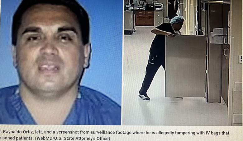 ശസ്ത്രക്രിയാ കേന്ദ്രത്തിലെ നിരീക്ഷണ ഫൂട്ടേജിൽ ഓർട്ടിസ് സിംഗിൾ IV ബാഗുകൾ ഓപ്പറേഷൻ റൂമിന് പുറത്തുള്ള ഹാളിലെ ചൂടിൽ നിക്ഷേപിക്കുന്നതായി കണ്ടു, “അതിന് ശേഷം ഒരു രോഗിക്ക് ഗുരുതരമായ സങ്കീർണതകൾ ഉണ്ടാകും.”അതേ ചൂടിൽ നിന്ന് എടുത്ത IV ബാഗുകളിലെ ലാബ് പരിശോധനയിൽ “ബാഗുകൾക്ക് ചുറ്റുമുള്ള പ്ലാസ്റ്റിക് റാപ്പിൽ ചെറിയ ദ്വാരങ്ങൾ കാണാവുന്നതാണ്”. ചില പ്രത്യേക ഭാഗങ്ങൾ മരവിപ്പിക്കാൻ ഉപയോഗിക്കുന്ന ലോക്കൽ അനസ്തെറ്റിക് ആയ ബുപിവാകൈൻ ബാഗുകളിൽ അടങ്ങിയിട്ടുണ്ടെന്നും പരിശോധനയിൽ കണ്ടെത്തി.