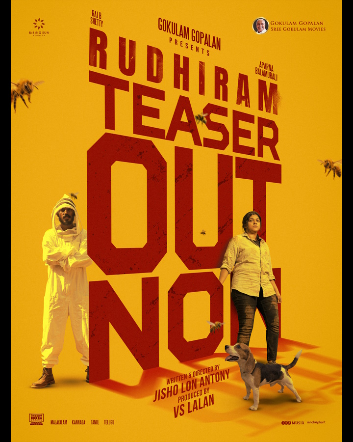 ‘ഒണ്ടു മോട്ടേയ കഥേ’, ‘ഗരുഡ ഗമന ഋഷഭ വാഹന’ എന്നീ ചിത്രങ്ങളിലൂടെ സംവിധായകനായും മികച്ച അഭിനേതാവായും പ്രേക്ഷകമനം കവര്ന്ന രാജ് ബി. ഷെട്ടി കന്നഡയിലെ നവതരംഗ സിനിമകളുടെ ശ്രേണിയിൽ ഉള്പ്പെട്ടയാളാണ്. മലയാളത്തിൽ ‘ടർബോ’യിലും ‘കൊണ്ടലി’ലും അദ്ദേഹം മികച്ച വേഷങ്ങളിൽ എത്തിയിരുന്നു. രാജ് ബി. ഷെട്ടിയും അപര്ണയും ഒന്നിച്ചെത്തുന്ന ‘രുധിരം’ മികച്ച അഭിനയ മുഹൂര്ത്തങ്ങള് സമ്മാനിക്കുമെന്ന പ്രതീക്ഷ നൽകുന്നുണ്ട് ടീസർ. റൈസിങ് സണ് സ്റ്റുഡിയോസിന്റെ ബാനറില് വി.എസ്. ലാലനാണ് ‘രുധിരം’ നിര്മ്മിക്കുന്നത്. ഗോകുലം ഗോപാലൻ അവതരിപ്പിക്കുന്ന ചിത്രം ശ്രീ ഗോകുലം മൂവിസിനു വേണ്ടി ഡ്രീം ബിഗ് ഫിലിംസ് തീയേറ്ററുകളിൽ പ്രദർശനത്തിനെത്തിക്കുന്നു. സഹ സംവിധായകനായി സിനിമാലോകത്തെത്തിയ സംവിധായകൻ ജിഷോ ലോണ് ആന്റണി പരസ്യചിത്രങ്ങളും, പൊളിറ്റിക്കൽ സ്ട്രാറ്റജിസ്റ്റ് ആയി വിവിധ രാഷ്ട്രീയ പാർട്ടികൾക്ക് വേണ്ടി വർക്ക് ചെയ്തിട്ടുള്ള പരിചയവുമായിട്ടാണ് തൻ്റെ ആദ്യ ചിത്രം ഒരുക്കുന്നത്.
