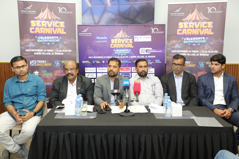 ദോഹ: പ്രവാസി വെൽഫെയർ പത്താം വാർഷികാഘോഷത്തിന്റെ ഭാഗമായി സംഘടിപ്പിക്കുന്ന സർവീസ് കാർണിവൽ നവംമ്പർ 29 വെള്ളിയാഴ്ച നടക്കുമെന്ന് സംഘാടകർ വാർത്താ സമ്മേളനത്തിൽ അറിയിച്ചു. വകറ ബർവ വില്ലേജിലെ ശാന്തിനികേതൻ ഇന്ത്യൻ സ്കൂളിലാണ് പരിപാടി നടക്കുക.