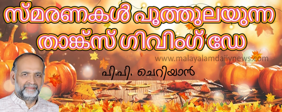 പതിവുപോലെ മറ്റൊരു താങ്ക്സ് ഗിവിങ് ഡേ കൂടി സമാഗതമായി. ജീവിതത്തിൽ അനുഭവവേദ്യമായ എല്ലാ നല്ല കാര്യങ്ങൾക്ക് നന്ദി പറയാൻ വേണ്ടി വേർതിരിക്കപ്പെട്ട ഒരു ദിനം.അമേരിക്കയിലെ കോളനികാലത്ത് ബ്രിട്ടീഷുകാർ തുടങ്ങിവെച്ചുവെന്നു പറയപ്പെടുന്ന ദിനം.