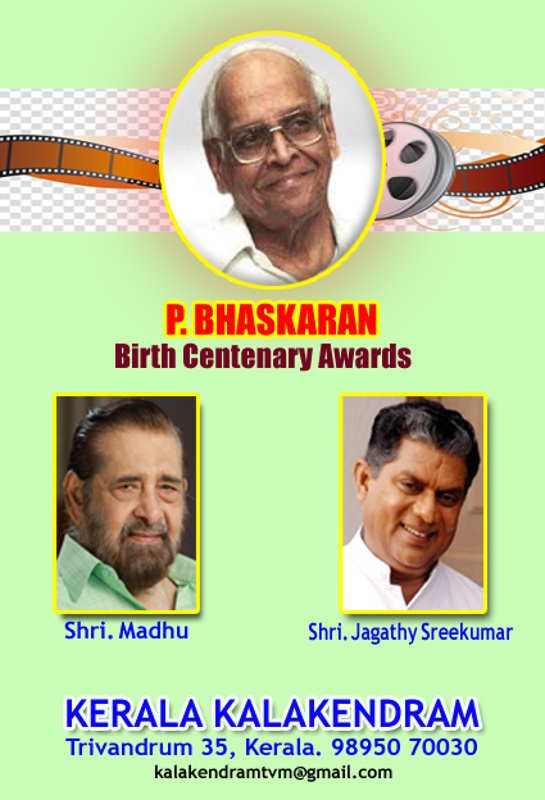 തിരുവനന്തപുരം: കവിയും ചലച്ചിത്ര നിര്മ്മാതാവും സംവിധായകനുമായ പി. ഭാസ്ക്കരന്റെ ജന്മശതാബ്ദി പ്രമാണിച്ച് കേരള കലാകേന്ദ്രം ഏര്പ്പെടുത്തിയ പി. ഭാസ്ക്കരന് ജന്മശതാബ്ദി പുരസ്ക്കാരം നടനും സംവിധായകനുമായ മധുവിനും നടന് ജഗതി ശ്രീകുമാറിനും സമ്മാനിക്കും.