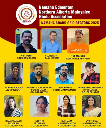 എഡ്മിന്റൻ : കാനഡയിലെ ആൽബർട്ടയിൽ എഡ്മിന്റൻ ആസ്ഥാനമായുള്ള നോർത്തേൺ ആൽബർട്ട മലയാളി ഹിന്ദു അസോസിയേഷൻ 2024-ലെ പ്രത്യേക വാർഷിക പൊതുയോഗത്തിൽ പുതിയ ഭാരവാഹികളെ തിരഞ്ഞെടുത്തു . ദിനേശ് രാജൻ (പ്രസിഡന്റ് ), സിദ്ധാർത്ഥ് ബാലൻ (വൈസ്പ്രസിഡന്റ്) , അജയ് കുമാർ കെ (സെക്രട്ടറി), പ്രജീഷ് നാരായണൻ (ജോയിന്റ് സെക്രട്ടറി), ഡാക്സ് വിജയഭാനു (ട്രെഷറർ) ആയും തിരെഞ്ഞെടുത്തു, കൂടാതെ വിബിൻകുമാർ നെല്ലിശ്ശേരി, അരുൺ രാമചന്ദ്രൻ, റിമ പ്രകാശ്, നീതു ഡാക്സ് എന്നിവരെ ബോർഡ് അംഗങ്ങളായും തിരെഞ്ഞെടുത്തു.