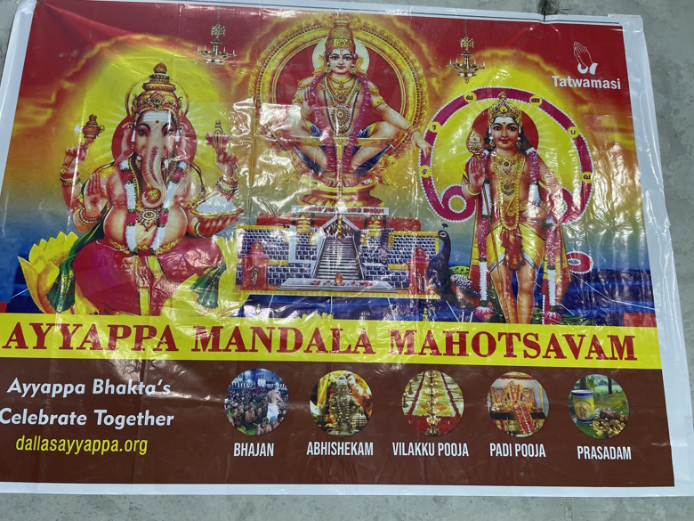 ദക്ഷിണ ഭാരതത്തിലെ വിവിധ സംസ്ഥാനങ്ങളിൽ വേരുകളുള്ള, രണ്ടായിരത്തോളം അയ്യപ്പ ഭക്തരുടെ ശരണഘോഷ മന്ത്രങ്ങളാൽ മുഖരിതമായിരുന്നു മണ്ഡല മഹോത്സവം. മുന്നോറോളം കന്നി സ്വാമിമാരിൽ നിന്നും നറുക്കിട്ടെടുത്ത കന്നിസ്വാമിയുടെ ശിരസ്സിലേന്തി അയ്യപ്പ ൻറെ ഉത്സവ മൂർത്തി വിഗ്രഹം വേദിയിലേക്ക് വാദ്യഘോഷങ്ങളുടെ അകമ്പടിയോടെ ആനയിക്കപ്പെട്ടു. നാൽപത്തിയൊന്ന് ദിവസത്തെ വ്രതാനുഷ്ടാനത്താൽ മനസ്സ് ഏകാഗ്രമാക്കി ശബരിഗിരിവാസനിൽ സർവ്വം സമർപ്പിച്ച അയ്യപ്പന്മാർ, മുഖ്യ അയ്യപ്പ വിഗ്രഹം പല്ലക്കിലേന്തി നഗ്നപാദരായി ഘോഷയാത്രയെ അനുഗമിച്ചു. വിലാസ് കുമാറിൻറെ നേതൃത്വത്തിൽ, ഡാളസ്സ് വാദ്യകലാകേന്ദ്രത്തിലെ പ്രഗൽഭരായ ചെണ്ട കലാകാരന്മാരാണ് ആഘോഷങ്ങൾക്ക് മേള പെരുമ ഒരുക്കിയത്. പമ്പാ വാസനെ പ്രകീർത്തിച്ചുകൊണ്ടുള്ള ഭക്തിഗാനാമൃതം, അനുഗ്രഹീത ഗായകർ വാദ്യോപകരണങ്ങളുടെ അകമ്പടിയോടെ ഭഗവൽ പാദങ്ങളിൽ അർപ്പിച്ചപ്പോൾ, കാനന വാസൻറെ ദിവ്യ പ്രഭ അന്തരീക്ഷത്തിലാകമാനം നിറഞ്ഞു നിന്നു. സ്വാമിമാരായ, പ്രമോദ്,ഹരിഹരൻ, രാജേഷ്, വിജയ്, രാംപീ, ജി കെ, ശ്രീരാം, രജിത്ത്, സുധീർ, ഉല്ലാസ്,സുഭാഷ്, ഹരി, അനൂപ് എന്നിവരാണ് ഭജന സംഘത്തിലെ ഗായകരിൽ ചിലർ.