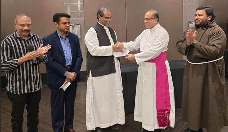 ഡാലസ്: കോപ്പേല് സെന്റ് അല്ഫോണ്സാ സീറോ മലബാര് കാത്തലിക് ദേവാലയത്തിലെ വി. അല്ഫോണ്സാമ്മയുടെ തിരുനാളിനോടനുബന്ധിച്ചു സമാഹരിച്ച ധനസഹായം ചിക്കാഗോ രൂപതാദ്ധ്യക്ഷന് മാര് ജോയ് ആലപ്പാട്ട് കേരളത്തിലെ കപ്പൂച്ചിന് സഭാംഗമായ ഫാ. ടോം കണ്ണന്താനത്തിനും സിഎംഐ സഭാംഗമായ ഷിജോ ചുരക്കലിനും ഇര്വിംഗ് ഇന്ഡ്യ വണ്ഓവണ് കണ്വന്ഷന് സെന്ററില് നടന്ന ചടങ്ങില് കൈമാറി.