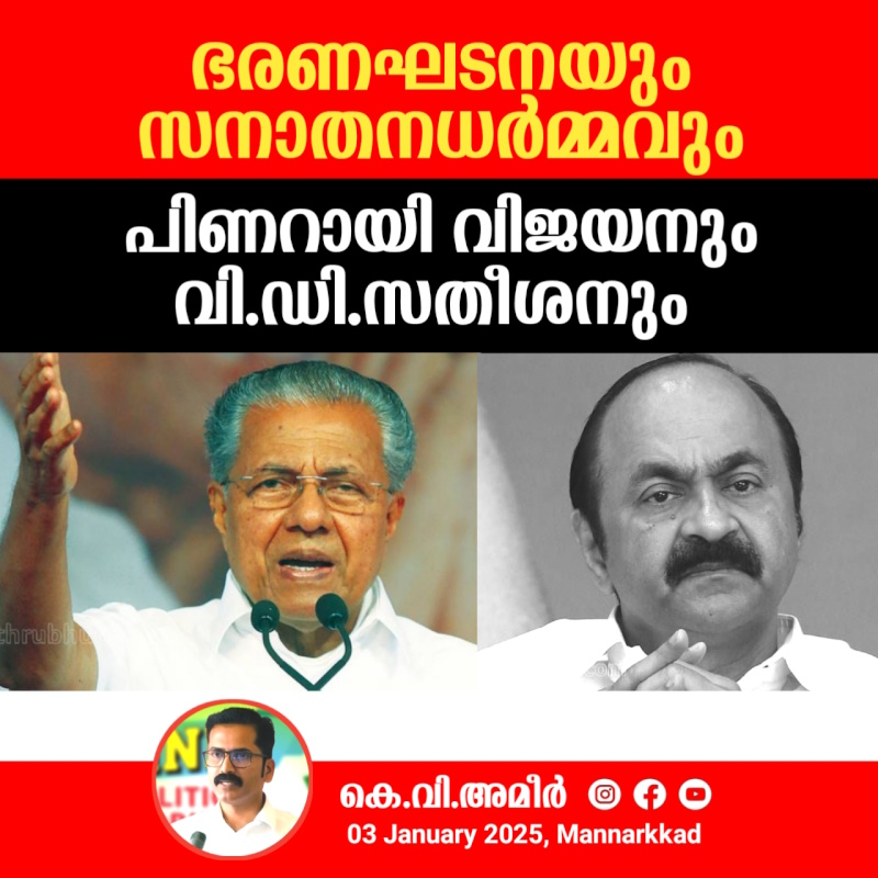 കേരളം ആർജ്ജിച്ച നവോത്ഥാന മൂല്യങ്ങൾ തകർക്കാൻ ആരെയും അനുവദിക്കില്ല, മാത്രമല്ല നവോത്ഥാന മുന്നേറ്റങ്ങൾക്ക് നേതൃത്വം നൽകിയ ശ്രീനാരായണ ഗുരുവിനെ സംഘപരിവാർ ആലയത്തിൽ കെട്ടാനുള്ള സനാതനധർമ്മ പാരമ്പര്യത്തെ നിരകരിച്ചത് തന്റെ കമ്മ്യൂണിസ്റ്റ് ആശയം മുന്നിൽ വെച്ചല്ല, മറിച്ച് രാജ്യത്തിന്റെ ഭരണഘടന മുന്നിൽ വെച്ചാണ് പിണറായി പറയുന്നത്. അതാണ് സതീശനും പിണറായി വിജയനും തമ്മിലുള്ള വ്യത്യാസം.