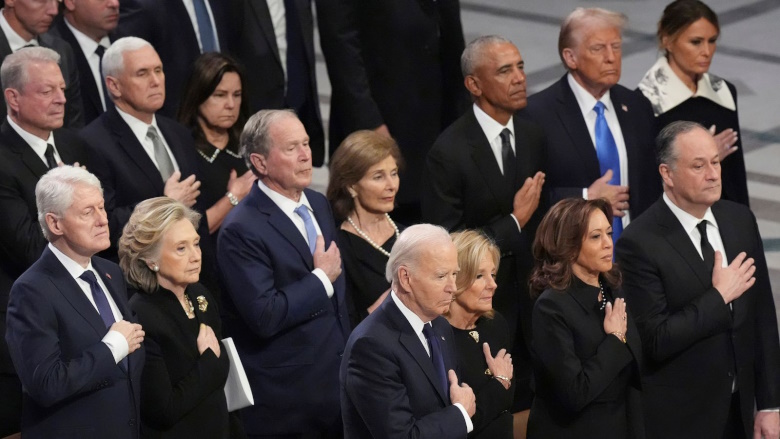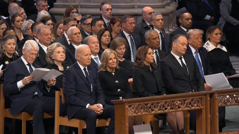 വാഷിംഗ്ടൺ ഡി സി :ഡിസംബർ 29 ന് ജോർജിയയിലെ തന്റെ ജന്മനാടായ പ്ലെയിൻസിൽ 100 വയസ്സുള്ളപ്പോൾ അന്തരിച്ച യുഎസിലെ 39-ാമത് പ്രസിഡന്റ് ജിമ്മി കാർട്ടറിന്റെ വ്യാഴാഴ്ച വാഷിംഗ്ടൺ നാഷണൽ കത്തീഡ്രലിൽ നടന്ന സംസ്ഥാന ശവസംസ്കാര ചടങ്ങിൽ നിയുക്ത പ്രസിഡന്റ് ഡൊണാൾഡ് ട്രംപ്, മറ്റ് മുൻ പ്രസിഡന്റുമാരായ ബരാക് ഒബാമ, ജോർജ്ജ് ഡബ്ല്യു ബുഷ്, ബിൽ ക്ലിന്റൺ എന്നിവർക്കൊപ്പം പ്രസിഡന്റ് ജോ ബൈഡനും അവരുടെ ഭാര്യമാർ എന്നിവർക്കൊപ്പം അന്തിമാഭിവാദ്യം അർപ്പിച്ചു