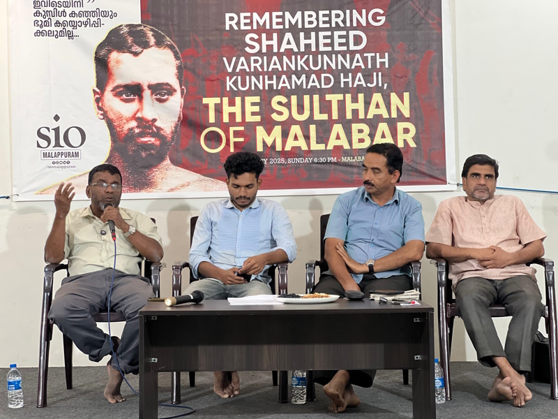 മലപ്പുറം: ഹിന്ദുത്വ തീവ്ര ദേശീയതയെ കൂട്ടുപിടിച്ച് മലബാറിലെയും മലപ്പുറത്തെയും ജനതക്കെതിരെ നടത്തുന്ന വിദ്വേഷപ്രചാരണങ്ങൾ ചരിത്രം മറന്നാണെന്ന് എസ്.ഐ.ഒ മലപ്പുറം കമ്മിറ്റി ചർച്ചാസംഗമം അഭിപ്രായപ്പെട്ടു. വാരിയംകുന്നത്ത് കുഞ്ഞഹമ്മദ് ഹാജിയുടെ നൂറ്റിരണ്ടാം രക്തസാക്ഷി ദിനത്തോടനുബന്ധിച്ച് മലപ്പുറം മലബാർ ഹൗസിൽ വച്ചായിരുന്നു ചർച്ചാ സംഗമം സംഘടിപ്പിച്ചത്.
