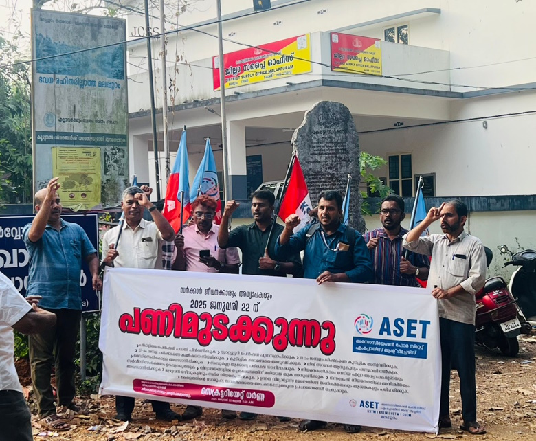 മലപ്പുറം: സംസ്ഥാനത്തെ സർക്കാർ ജീവനക്കാരും അദ്ധ്യാപകരും നടത്തുന്ന പണിമുടക്കിനിടനുബന്ധിച്ച് (അസോസിയേഷൻ ഫോർ സ്റ്റേറ്റ് എംപ്ലോയീസ് ആൻഡ് ടീച്ചേഴ്സ് (ASET) മലപ്പുറം സിവിൽ സ്റ്റേഷന് മുന്നിൽ പ്രതിഷേധ സംഗമം നടത്തി.