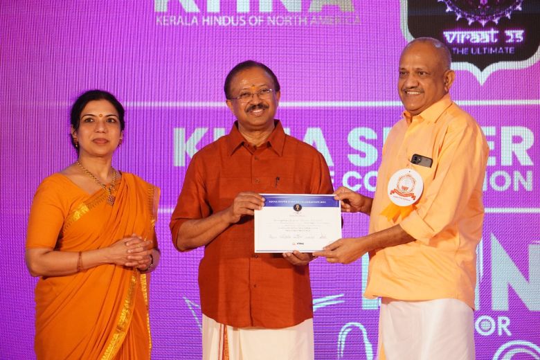 ന്യൂയോര്ക്ക്: സനാതനധര്മ്മ പ്രചരണത്തിനായി അമേരിക്കയില് പ്രവര്ത്തിക്കുന്ന കേരള ഹിന്ദൂസ് ഓഫ് നോര്ത്ത് അമേരിക്കയുടെ രജതജൂബിലി ആഘോഷങ്ങളുടെ മുന്നോടിയായി നടന്ന കേരള കോണ്ക്ലേവ് പ്രൗഢവും അര്ത്ഥവത്തുമായിരുന്നു. അങ്കമാലി അഡ്ലക്സ് ഇന്റര്നാഷണല് കണ്വെന്ഷന് സെന്ററില് ‘കെഎച്ച്എന്എ ഫോര് കേരള’ എന്ന പേരില് നടന്ന പരിപാടിയില് ആര്ഷദര്ശനം സാഹിത്യരംഗത്ത് നടത്തിയ സമഗ്ര സംഭാവനകള്ക്കുള്ള നാലാമത് ആര്ഷദര്ശന പുരസ്കാരം നിരൂപണരംഗത്തെ മഹാമനീഷി ഡോ. എം. ലീലാവതിക്ക് സമര്പ്പിച്ചു. സമഗ്ര സംഭാവനകള്ക്കുള്ള ചലച്ചിത്ര പ്രതിഭ പുരസ്കാരം നടനും സംവിധായകനുമായ ശ്രീനിവാസന് സമ്മാനിച്ചു.