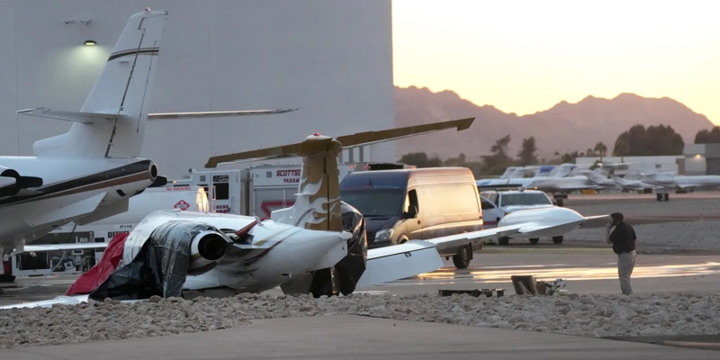 അപകടത്തിൽ മറ്റ് നാല് പേർക്ക് പരിക്കേറ്റതായി സ്കോട്ട്സ്ഡെയ്ൽ അഗ്നിശമന വകുപ്പ് വക്താവ് ഡേവ് ഫോളിയോ പത്രസമ്മേളനത്തിൽ പറഞ്ഞു. ഒരാൾ ഇപ്പോഴും വിമാനത്തിൽ കുടുങ്ങിക്കിടക്കുന്നുണ്ടെന്ന് അദ്ദേഹം പറഞ്ഞു. അയാളെ രക്ഷിക്കുന്ന തിരക്കിലാണ് രക്ഷാപ്രവർത്തകർ. പരിക്കേറ്റ മൂന്ന് പേരെ സമീപത്തുള്ള ആശുപത്രിയിൽ പ്രവേശിപ്പിച്ചു. അമേരിക്കയിൽ അടുത്തിടെയുണ്ടായ മൂന്ന് വിമാനാപകടങ്ങൾ വിശദമായി അന്വേഷിച്ചുവരികയാണ്. മൂന്ന് അപകടങ്ങളെക്കുറിച്ചും ദേശീയ ഗതാഗത സുരക്ഷാ ബോർഡ് അന്വേഷണം നടത്തുന്നുണ്ട്.