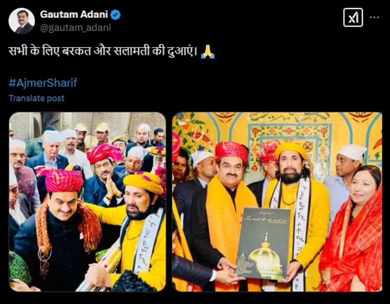 ആത്മീയ ഐക്യത്തിന്റെയും സമാധാനത്തിന്റെയും പ്രതീകമായ അജ്മീർ ഷെരീഫ് ദർഗ ലോകമെമ്പാടുമുള്ള തീർത്ഥാടകരെ ആകർഷിക്കുന്നു. ഇന്ത്യയുടെ സമ്പന്നമായ ആത്മീയ പൈതൃകവുമായുള്ള ശക്തമായ ബന്ധത്തെയും ദർഗ പ്രതിനിധീകരിക്കുന്ന മാനവികത, കാരുണ്യം, സമാധാനം എന്നിവയുടെ മൂല്യങ്ങൾക്കുള്ള ആദരവിനെയും അദാനി കുടുംബത്തിന്റെ സന്ദർശനം പ്രതിഫലിപ്പിക്കുന്നു.