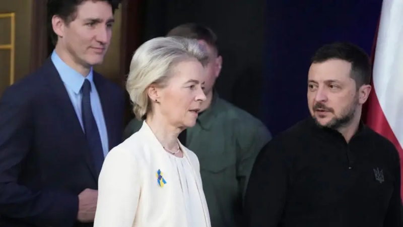 റഷ്യ-ഉക്രെയ്ൻ യുദ്ധത്തിന്റെ മൂന്നാം വാർഷികത്തിൽ, നിരവധി ആഗോള നേതാക്കൾ കീവിലെത്തി ഉക്രെയ്നിന് പിന്തുണ അറിയിച്ചു. യൂറോപ്യൻ കമ്മീഷൻ പ്രസിഡന്റ് ഉർസുല വോൺ ഡെർ ലെയ്ൻ, കനേഡിയൻ പ്രധാനമന്ത്രി ജസ്റ്റിൻ ട്രൂഡോ എന്നിവരുൾപ്പെടെ നിരവധി നേതാക്കൾ ഉക്രെയ്നിന് പിന്തുണയുമായി നിലകൊണ്ടിട്ടുണ്ട്.