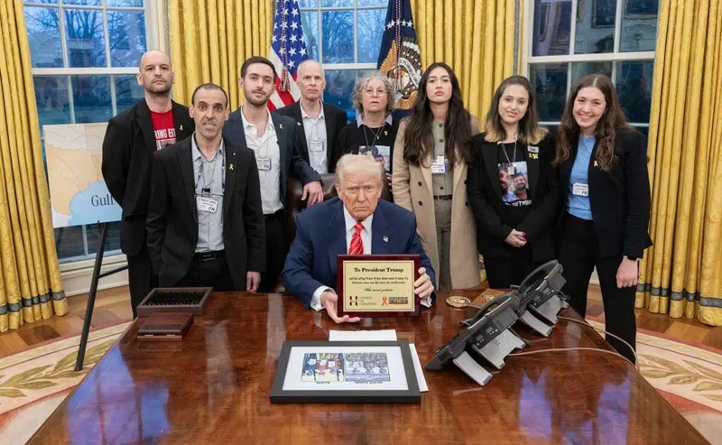 ഇയർ ഹോൺ, ഒമർ ഷെം ടോവ്, എലി ഷറാബി, കീത്ത് സീഗൽ, അവീവ സീഗൽ, നാമ ലെവി, ഡോറോൺ സ്റ്റീൻബ്രെച്ചർ, നോവ അർഗമാനി എന്നീ എട്ട് മുൻ ബന്ദികളെ ട്രംപ് ബുധനാഴ്ച വൈറ്റ് ഹൗസിലേക്ക് സ്വാഗതം ചെയ്തു.