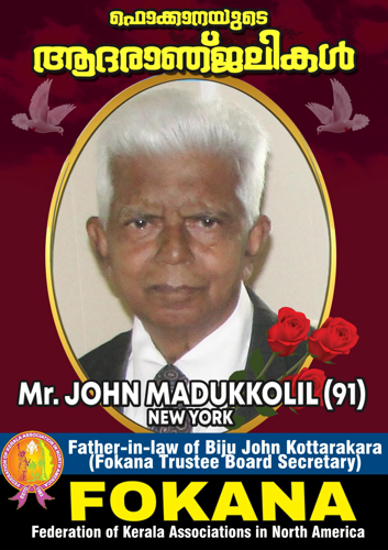 ജോൺ മടുക്കോലിന്റെ നിര്യാണത്തിൽ അനുശോചനം രേഖപ്പെടുത്തുന്നതിനോടൊപ്പം അദ്ദേഹത്തിന്റെ ആത്മാവിന്റെ നിത്യശാന്തിക്ക് വേണ്ടി പ്രാർത്ഥിക്കുന്നതായി ഫൊക്കാന എക്സിക്യൂട്ടീവ് കമ്മിറ്റി , നാഷണൽ കമ്മിറ്റി , ട്രസ്റ്റീ ബോർഡ് എന്നിവർ അറിയിച്ചു