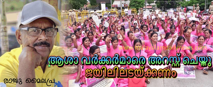 കഴിഞ്ഞ ഒരു മാസത്തിലധികമായി തികച്ചും ന്യായമല്ലാത്ത ആവശ്യങ്ങള് ഉന്നയിച്ചുകൊണ്ട്, സെക്രട്ടേറിയറ്റിനു മുന്നില് സമരം നടത്തി, ലോകരാഷ്ട്രങ്ങളുടെ മുന്നില് നമ്പര് വണ് കേരളത്തെ നിരന്തരം അപമാനിച്ചുകൊണ്ടിരിക്കുന്ന ‘ആശാ വര്ക്കേഴ്സ്’ എന്ന ലേബലില് അറിയപ്പെടുന്ന ഒരുപറ്റം ധിക്കാരികളായ സ്ത്രീകളെ എത്രയും പെട്ടെന്ന് അറസ്റ്റ് ചെയ്തു ജയിലിലടച്ചു നമ്മുടെ സംസ്ഥാനത്തിന്റെ മാനം രക്ഷിക്കണം.