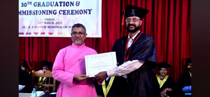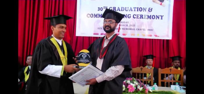 ചെന്നൈ ജൂബിലി മെമ്മോറിയൽ ബൈബിൾ കോളേജിൽ(JMBC) നടന്ന ചടങ്ങിൽ ബിഷപ്പ്. ഡോ. എബ്രഹാം ചാക്കോയിൽ നിന്ന് സർട്ടിഫിക്കറ്റും, കോളേജ് പ്രിൻസിപ്പാൾ റവ.ഡോ.പ്രകാശ് എബ്രഹാം മാത്യുവിൽ നിന്ന് മൊമെന്റോയും ബാബു കൊച്ചുമ്മൻ ഏറ്റുവാങ്ങി.