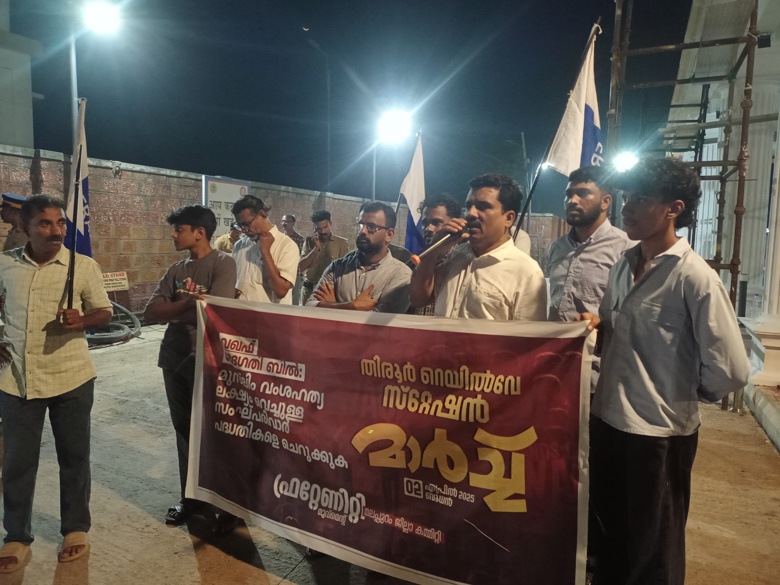 റായിൽവേ സ്റ്റേഷൻ മാർച്ച് വെൽഫയർ പാർട്ടി ജില്ലാ വൈസ് പ്രസിഡന്റ് അഷ്റഫ് വൈലത്തൂർ ഉദ്ഘാടനം ചെയ്തു. വെൽഫയർ പാർട്ടി തിരൂർ മണ്ഡലം പ്രസിഡന്റ് സഹീർ കോട്ട് ജില്ലാ ജനറൽ സെക്രടറി അഡ്വ: അമീൻ യാസിർ,ജില്ലാ വൈസ് പ്രസിഡന്റ് അജ്മൽ ഷഹീൻ എന്നിവർ നേതൃത്വം നൽകി.