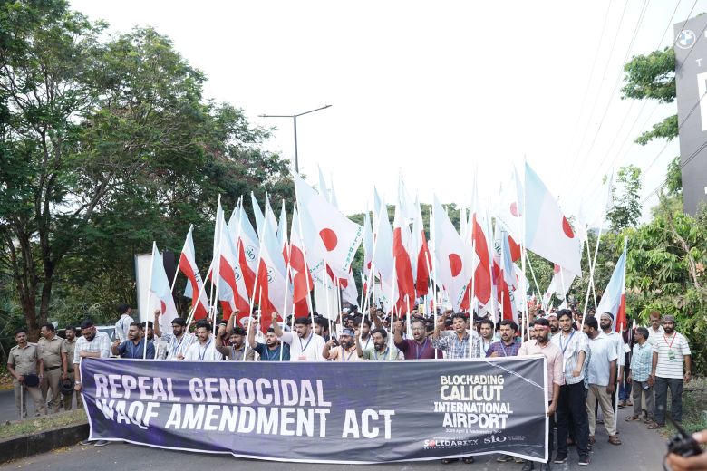 കരിപ്പൂർ : വംശീയ ഉന്മൂലനത്തിനു കളമൊരുക്കുന്ന വഖ്ഫ് ഭേദഗതി നിയമം പിൻവലിക്കുക എന്ന ആവശ്യമുന്നയിച്ച് സോളിഡാരിറ്റി – എസ്.ഐ.ഒ സംസ്ഥാന കമ്മിറ്റിയുടെ നേതൃത്വത്തിൽ കരിപ്പൂർ വിമാനത്താവളം ഉപരോധിച്ചു. ആയിരക്കണക്കിന് വിദ്യാർത്ഥി യുവജനങ്ങളാണ് വിമാനത്താവളത്തിലേക്കുള്ള റോഡിൽ കുത്തിയിരുന്ന് സമരം ചെയ്തത്.