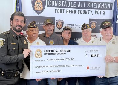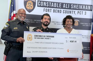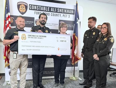 വമ്പിച്ച ഭൂരിപക്ഷത്തോടെ ഫോർട്ട്ബെൻഡ് കൗണ്ടി പ്രീസിംഗ്റ്റ് മൂന്ന് കോൺസ്റ്റബിളായി തിരഞ്ഞെടുക്കപ്പെട്ട അലി ഷെയ്ഖാനി തന്റെ മൂന്നു മാസത്തെ ഭരണ നേട്ടങ്ങൾ വിവരിക്കാനായി വിളിച്ചുകൂട്ടിയ പത്രസമ്മേളനത്തിലാണ് ഇക്കാര്യം വെളിപ്പെടുത്തിയത്. കഴിഞ്ഞ മൂന്നു മാസമായി അദ്ദേഹത്തിന് ലഭിച്ച ആറ് ശമ്പള ചെക്കുകൾ ഓരോന്നും ആറു സംഘടനകൾക്ക് നൽകി മാതൃകയായി. ഓരോ ചെക്കും 4125 ഡോളർ മുതൽ 4387 ഡോളർ വരെ തുകയുള്ളവയായിരുന്നു.