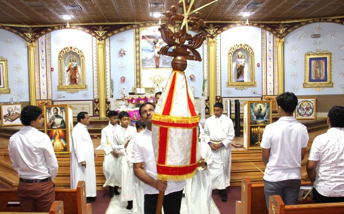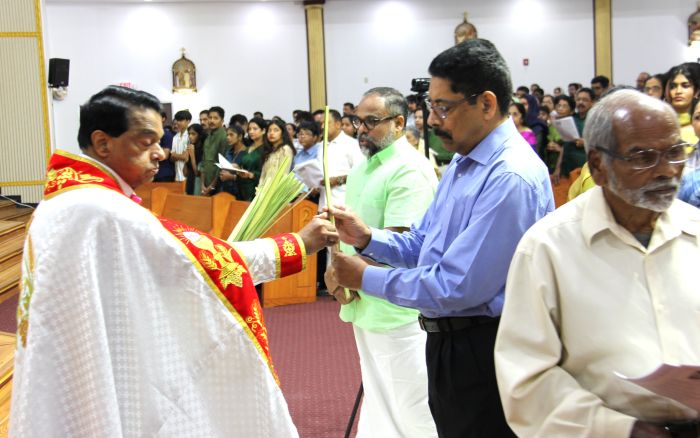വികാരി ഫാ.എബ്രഹാം മുത്തോലത്ത് , അസിസ്റ്റന്റ് വികാരി ഫാ.ജോഷി വലിയവീട്ടിൽ എന്നിവരുടെ മുഖ്യ കാർമികത്വത്തിൽ തിരുകർമ്മങ്ങൾ ഭക്തി സാന്ദ്രമായി നടത്തപ്പെട്ടു . കുരുത്തോല വിതരണവും വിശുദ്ധ കുർബാനയും, മലയാളത്തിലും, യുവജനങ്ങൾക്കും കുട്ടികൾക്കുമായി ഇംഗ്ലീഷിലും നടത്തപ്പെട്ടു.