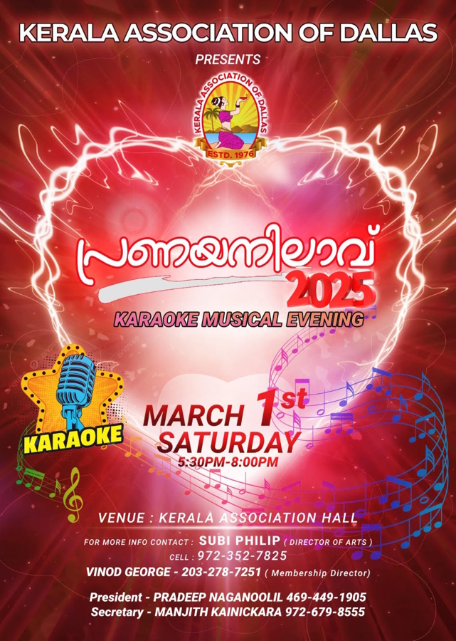 ഗാർലാൻഡ് (ഡാളസ്): കേരള അസോസിയേഷൻ ഓഫ് ഡാളസ്,ഇന്ത്യ കൾച്ചറൽ & എഡ്യൂക്കേഷൻ സെന്റർ സംയുക്തമായി “മദേഴ്സ് -നേഴ്സസ് “ദിനം മെയ് 3 നു ആഘോഷിക്കുന്നു.ഗാർലാൻഡ് കേരള അസോസിയേഷൻ കോൺഫ്രൻസ് ഹാളിൽ ശനിയാഴ്ച രാവിലെ 10 നു ആരംഭിക്കുന്ന സമ്മേളനത്തിൽ ഡോ. നാൻസി തോമസ്(പിഎച്ച്.ഡി, എം.എ, ബി.എ., എൽപിസി-എസ്, ഇഎംഡിആർ),ഡോ. വിജി ജോർജ് (ഡിഎൻപി, എം.എ., ആർഎൻസി-ഐഎൻസി, എൻഇഎ-ബിസി),എന്നിവർ വിവിധ വിഷയങ്ങളെ കുറിച്ച് പ്രഭാഷണം നടത്തും.അമ്മമാരെയും നഴ്സുമാരെയും ആദരിക്കുന്ന ചടങ്ങിൽ പങ്കെടുക്കുന്നതിനു ഏവരെയും ക്ഷണിക്കുന്നതായി സംഘാടകർ അറിയിച്ചു