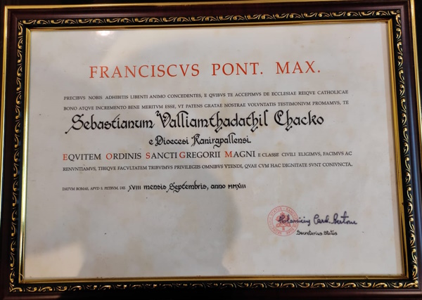 2013ല് മാര്പാപ്പയായി സ്ഥാനമേറ്റതിനുശേഷം ഇന്ത്യയില് നിന്ന് ആദ്യമായി ഫ്രാൻസിസ് മാർപാപ്പ, അല്മായവർക്ക് ആഗോള കത്തോലിക്കാ സഭ നൽകുന്ന പരമോന്നത അംഗീകാരമായ ഷെവലിയര് പദവി ലഭിച്ച വ്യക്തിയെന്ന നിലയില് ഈ വേർപാട് കൂടുതല് നൊമ്പരങ്ങള് സൃഷ്ടിക്കുന്നുവെന്നും വി.സി.സെബാസ്റ്റ്യന് പറഞ്ഞു.