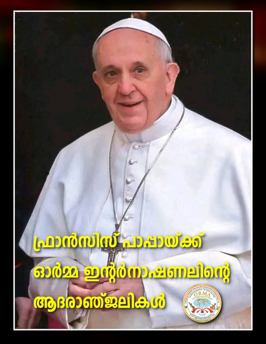 ഈ അവസരത്തിൽ മാർപാപ്പയുടെ വിയോഗത്തിൽ ദുഃഖിതരായിരിക്കുന്ന ലോക ജനതയോട് ഒന്നുചേർന്ന് ഓർമ്മ ഇൻെറർനാഷ്ണ ൽ അതിയായ ദുഃഖവും അനുശോചനവും പ്രാർത്ഥനയും അറിയിക്കുന്നതോടൊപ്പം മാർപാപ്പയുടെ ആത്മാവിന് നിത്യശാന്തിയും നേരുന്നു.