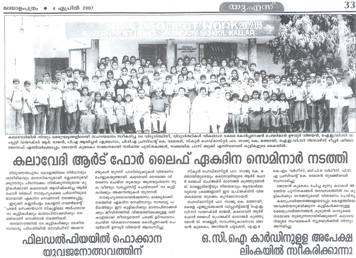 രണ്ടായിരത്തി ആറിൽ തിരുവനന്തപുരത്തുവച്ച് അരങ്ങേറിയ കലാവേദി ചലച്ചിത്ര അവാർഡ് വേദിയിൽ വച്ച് ‘ആര്ട്ട് ഫോർ ലൈഫ് – കല ജീവന് വേണ്ടി’ എന്നൊരു സഹായ പദ്ധതി പഠനത്തിൽ ഈ കുട്ടികൾക്കായി ആരംഭിച്ചു. നടൻ ശ്രീനിവാസനായിരുന്നു അത് ഉത്ഘാടനം ചെയ്തത്.
