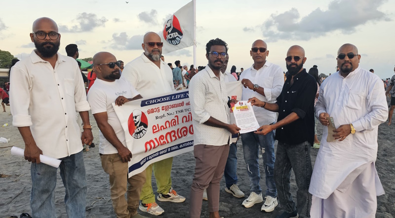 മൊട്ട ഗ്ലോബൽ ഫൗണ്ടേഷന്റെ നേതൃത്വത്തില് ആലപ്പുഴ കടപ്പുറത്ത് ‘ലഹരി ഉപേക്ഷിക്കൂ ജീവിതം ആസ്വദിക്കൂ ‘എന്ന ലഘുലേഖ വിതരണം ചെയ്ത മൊട്ട സംഘത്തെ പോലീസ് ഉദ്യോഗസ്ഥര് ഉൾപ്പെടെ നിരവധി പേർ അഭിനന്ദിച്ചു.
