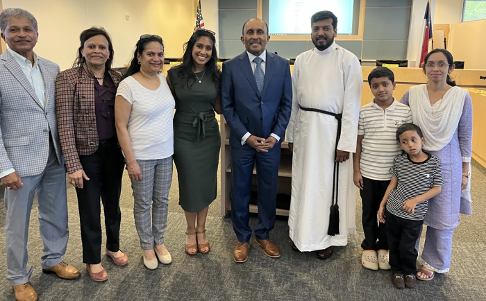 മെയ് 12 തിങ്കളാഴ്ച വൈകീട്ട് 7 മണിക്ക് സണ്ണിവെയ്ല് സിറ്റി ഹാളില് നടന്ന ചടങ്ങില് ടെക്സസ് സംസ്ഥാന പ്രതിനിധി റഹിറ്റ ബോവേഴ്സാണ് സത്യപ്രതിജ്ഞ വാചകം ചൊല്ലി കൊടുത്തത്.പാസ്റ്റർ ഷാജി കെ ഡാനിയേലിന്റെ പ്രാർത്ഥനയോടെയാണ് സത്യപ്രതിജ്ഞ ചടങ്ങു് ആരംഭിച്ചത്എം ഡാളസ് സെന്റ് പോൾസ് ഇടവക വികാരി റെജിൻ ജോൺ ഉൾപെട നിരവധി പേര് ചടങ്ങിൽ പങ്കെടുത്തു.