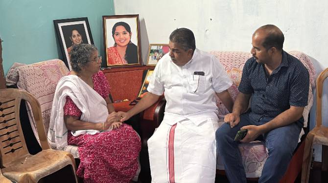 തിരുവല്ല: അഹമ്മദാബാദില് എയര് ഇന്ത്യാ വിമാനാപകടത്തിൽ മരിച്ച തിരുവല്ല പുല്ലാട് സ്വദേശി രഞ്ജിത ജി നായരുടെ കുടുംബത്തിനൊപ്പം സർക്കാരുണ്ടെന്ന് ഫിഷറീസ് വകുപ്പ് മന്ത്രി സജി ചെറിയാൻ. കുടുംബാംഗങ്ങളെ വീട്ടിലെത്തി ആശ്വസിപ്പിക്കുകയായിരുന്നു മന്ത്രി. രഞ്ജിതയുടെ മൃതദേഹം നാട്ടിലെത്തിക്കാനുള്ള നടപടി വേഗത്തിലാക്കുമെന്ന് അദ്ദേഹം പറഞ്ഞു.