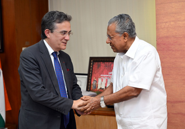 തിരുവനന്തപുരം: ഇന്ത്യയിലെ ഫ്രഞ്ച് അംബാസിഡർ തിയെറി മതൗ മുഖ്യമന്ത്രി പിണറായി വിജയനുമായി തിരുവനന്തപുരത്ത് കൂടിക്കാഴ്ച നടത്തി. ഭാഷയടക്കം പരിശീലിപ്പിച്ച് നഴ്സുമാർക്ക് ഫ്രാൻസിലേക്ക് തൊഴിലവസരം ലഭ്യമാക്കുന്നത് പരിഗണിക്കുമെന്ന് അദ്ദേഹം പറഞ്ഞു. ബ്ലൂ ഇക്കോണമിയുമായി ബന്ധപ്പെട്ട പ്രവർത്തനങ്ങൾ ശക്തിപ്പെടുത്താൻ ഫിഷറീസ് വകുപ്പുമായി ചേർന്ന് നടപടിയെടുക്കും. ഈ വിഷയത്തിൽ സെപ്റ്റംബറിൽ നടക്കുന്ന കോൺക്ലേവിൽ ഫ്രാൻസിൽ നിന്നുള്ള പ്രതിനിധികൾ പങ്കെടുക്കും.